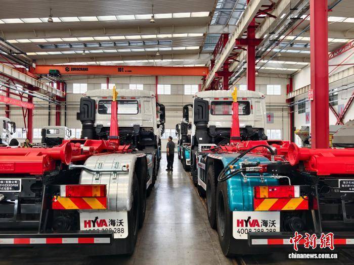 9月19日,江苏扬州,海沃国际集团亚洲区总部车间内展示的车厢可卸式垃圾车。中新社记者 徐珊珊 摄