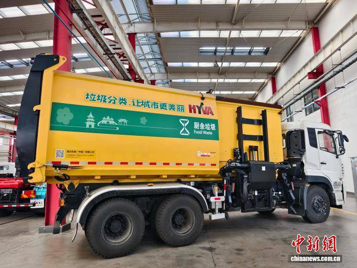 9月19日,江苏扬州,海沃国际集团亚洲区总部车间内展示的侧上料垃圾收集压缩车。中新社记者 徐珊珊 摄