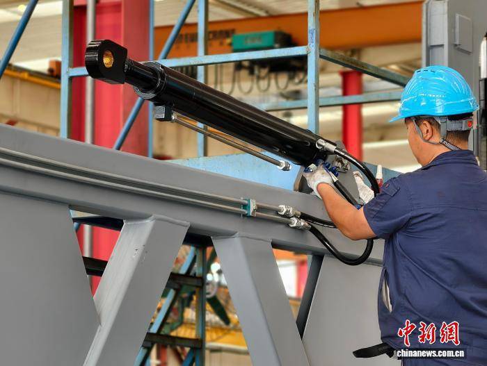 9月19日,江苏扬州,海沃国际集团亚洲区总部车间内生产景象。当日,记者跟随“活力中国调研行”江苏主题采访活动走进海沃国际集团亚洲区总部。该企业用“数智”赋能生产,对车间生产系统进行数字化改造,生产的自卸车液压系统产品全球市场占有率达40%以上。中新社记者 徐珊珊 摄