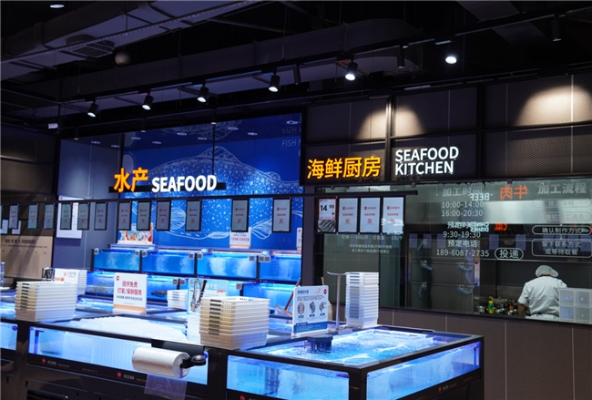 生鲜品类是此次升级的重头戏。水果区新增果切果汁、冷萃茶、水果捞等年轻化品类,并以各类应季爆品构建矩阵,渗透年轻客群的社交、通勤与轻食场景。蔬菜区引入有机菜及闽北炖汤特色食材,如石橄榄、金线莲、鲜人参、五指毛桃等养生滋补品,并通过定向种植与全程溯源保障品质。水产区域则聚焦海域直采,推出江苏吕四港、连云港等地的鲜活梭子蟹,皮皮虾、罗氏虾等海鲜新品也将陆续登场,同时帝王蟹、波龙、面包蟹、珍宝蟹组成“进口四大金刚”,满足顾客对高端海鲜的需求,门店增设的海鲜厨房还提供代客加工服务,有效解决了消费者“不会做、不好处理”的痛点。