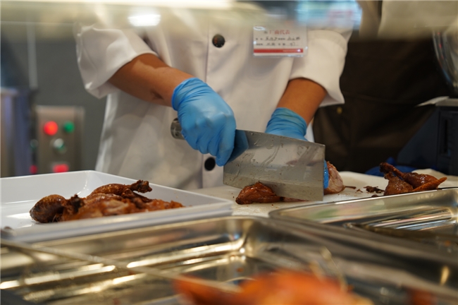 步入熟食烘焙区,各类档口烟火气十足。现场制作的鲜肉包、鲜肉饼、烤鸡、炸水饺等香气四溢,刚出炉的烤鸭泛着油亮的光泽,最引人驻足的当属小龙虾专柜,新鲜出锅的小龙虾堆成红霞山,麻辣、蒜香、十三香等三种口味供消费者选择。烘焙工坊实现了从无到有的跨越,自制SKU增加至50支,所有原料严格执行“不使用代可可脂、氢化植物油”等健康标准,确保品质安心。