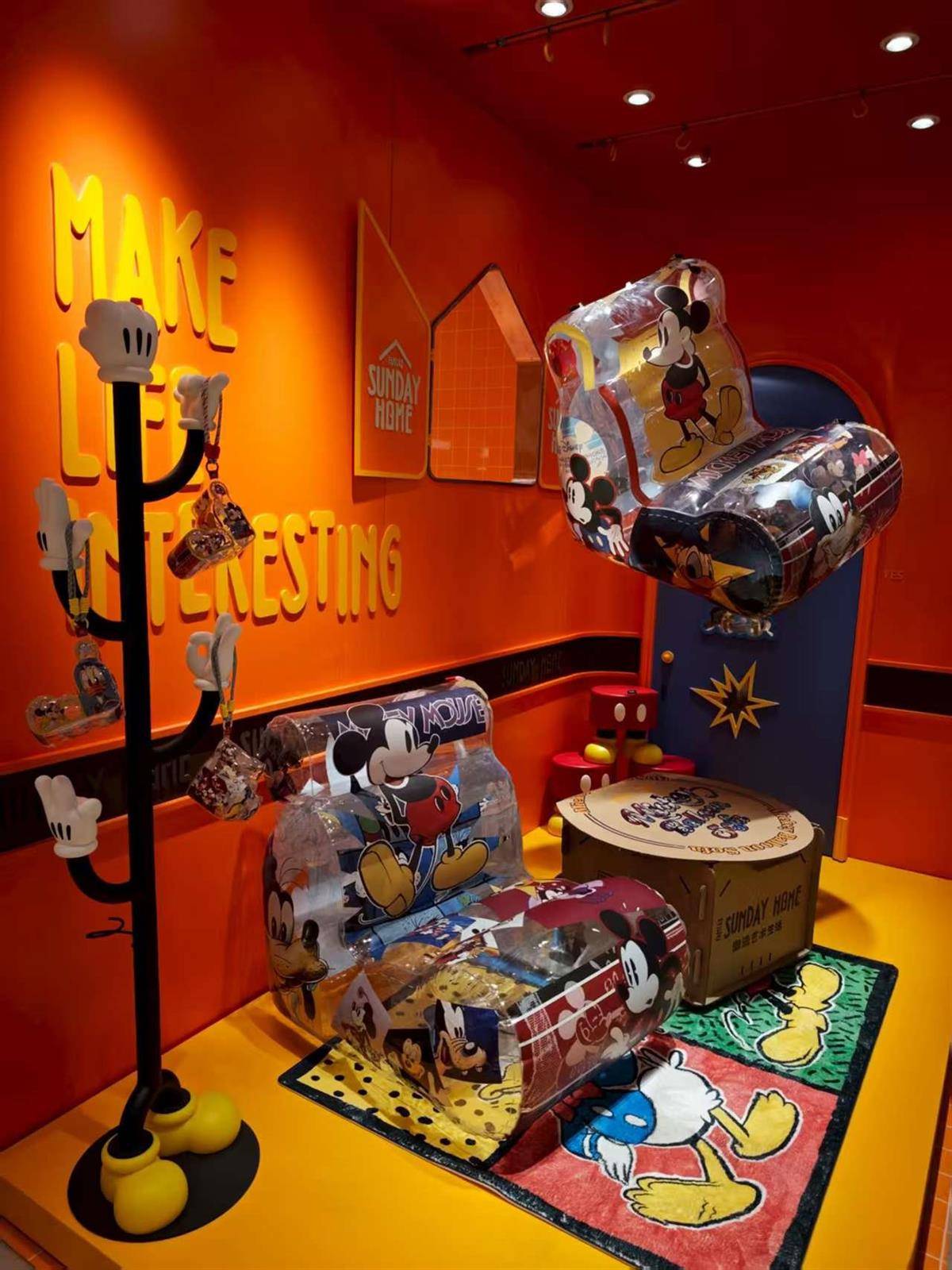 为何要打造“有趣的家居”?吉来坦言,除了将艺术融入日常的品牌理念外,更重要的是洞察到消费者的情绪需求。“现在人生活节奏快,回家后都想有个能放松的空间。我们选迪士尼、蜡笔小新等大家熟悉的IP做设计,就是想借童年记忆里的形象,带来天然的温馨感。”她举例,顾客坐在米奇椅上休息、用卡通收纳箱整理衣物时,看到熟悉的IP造型,哪怕只是片刻,也能不自觉卸下压力。