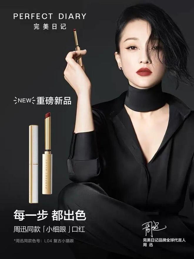 借助明星的流量和形象,投放代言人广告是树立品牌最直接也最迅速的手段,而且代言人能够背书品牌实力,让消费者对品牌产生信心和信赖感,这一点对新品牌尤其重要。在古早时期,代言人+TVC+央卫视投放就是品牌建设的三板斧。比如2020年完美日记推出升级产品“小细跟”口红,官宣周迅成为品牌首位代言人,并且打造了“每一步 都出色”的品牌片进行投放,强调女性态度与自信力量。