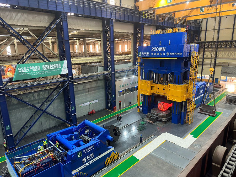 9月25日,天锻压力机有限公司研制并配套的全球最大的2.2万吨自由锻压机、最大22米轧环机、300吨操作机等先进装备组成的全球顶级自由锻造产品线在伊莱特公司正式投产。
