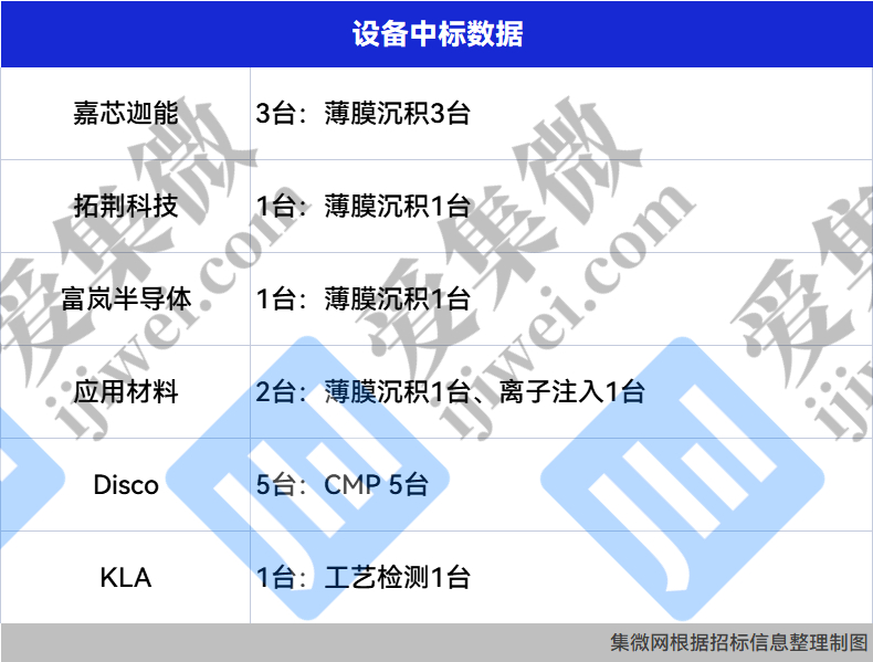 5.【一周招/中标】嘉芯迦能新增中标设备3台,拓荆科技新增中标设备1台,上海积塔新增设备招标4台