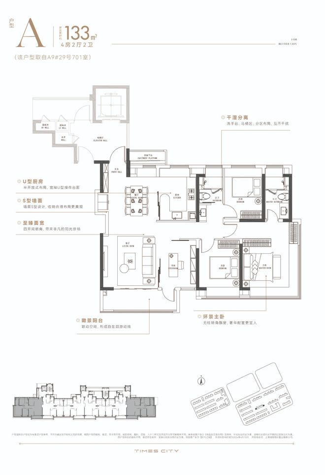 「约133㎡ 4房2厅2卫」小高边套☑️☑️华润时代之城售楼处电话:☑️☑️
