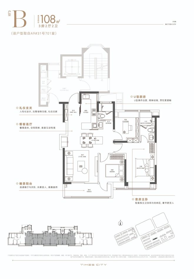 「约108㎡ 3房2厅2卫」小高17层☑️☑️华润时代之城售楼处电话:☑️☑️
